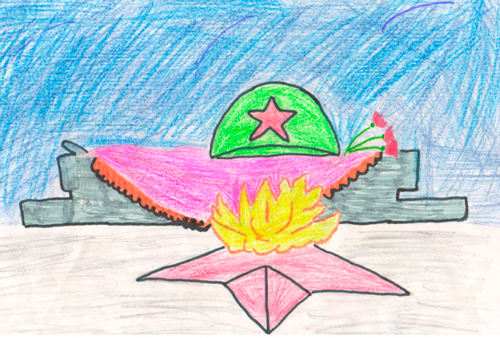 Конечно, дети постарше могут сами нарисовать рисунки военной техники, солдатов, гвоздик. Вам только нужно придумать композицию из этого.