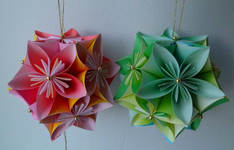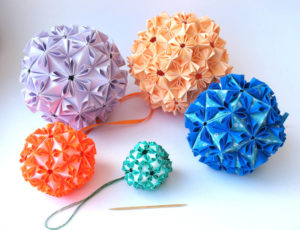 Шары кусудама из бумаги отличаются простотой создания и малым количеством исходных материалов.
