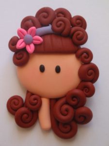 Теперь раскатываем этот кусочек и крышкой от бутылки делаем из него круг, получилось лицо. Теперь берем белый пластилин сплющиваем в овальную форму и вырезав в середине той же крышечкой круг, процарапываем снизу броду, а сверку натыркиваем щеткой – это будет мех от шапки.