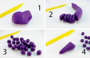 - Формируем фиолетовые маленькие шарики. Это основная часть, поэтому лучше сделать как можно больше;