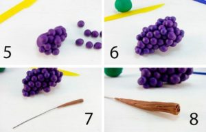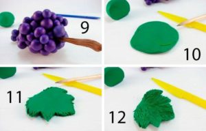 Виноград. Нам понадобится: фиолетовая и зеленая масса: