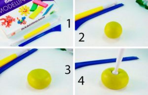- Выбираем из набора упитанный кусочек желтого пластилина;