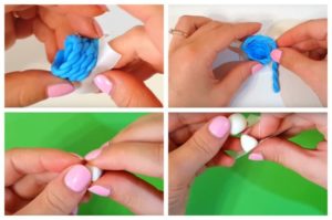 - Делаем себе восемь заготовок в виде небольших шариков голубого цвета;