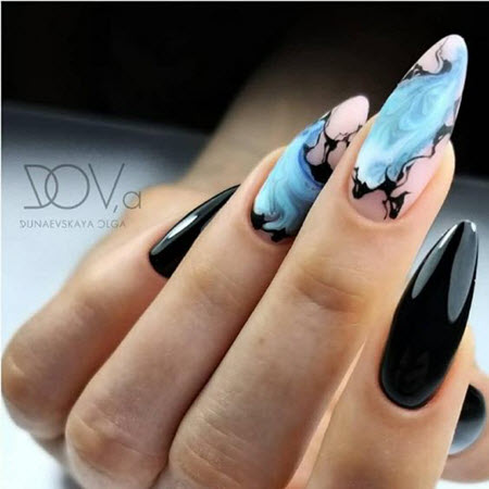 Самые модные идеи мраморного маникюра на короткие ногти смотрите на фото:
