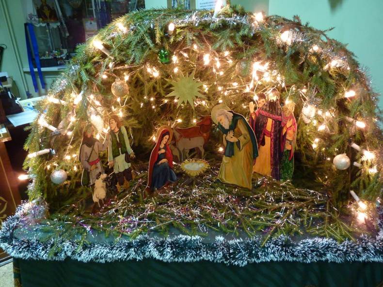 Вертеп украшают веточками хвои, и устанавливают на самое видное место.