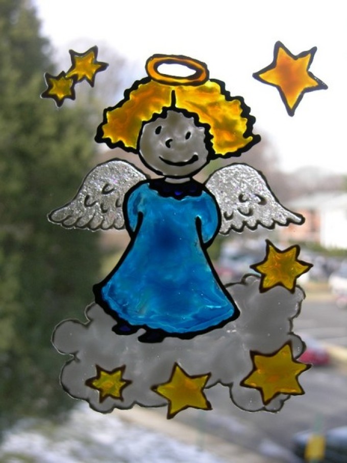 Существуют и специальные витражные краски для детей, которые наносятся не на само стекло, а на пленку. Как изготовить самому такие витражные пленки, которые впоследствии украсят Ваши окна?
