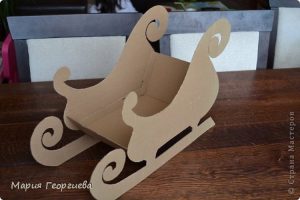 Изготавливаются поделки из прочных материалов. Это может быть картон, пенопласт, проволока. Выбранный материал определяет наличие дополнительных элементов. Их подготавливают заранее. Сани из картона – это самый простой вариант. В таком случае используется любая ненужная коробка.