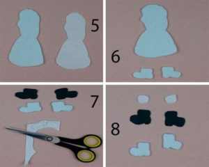 - Следуя инструкции необходимо загнуть края и вырезать лишнее. Для крепления деталей необходимо использовать обычный клей ПВА.