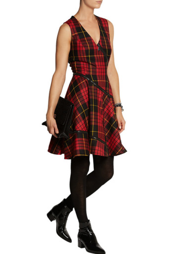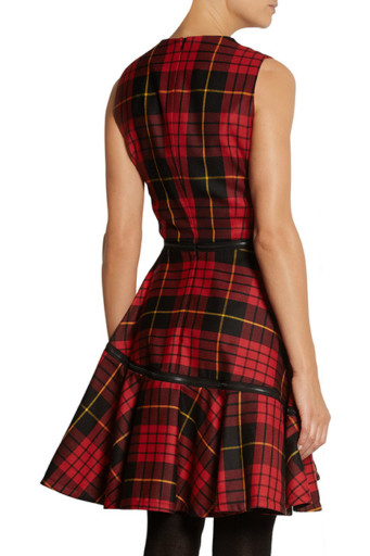 Клетчатые наряды с юбкой солнце могут быть короткими, до колен или в пол. Наиболее распространенными цветовыми сочетаниями такого принта являются красный и черный, а также черный и белый.
