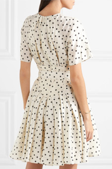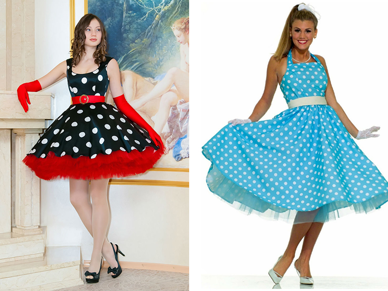 Юбка солнце в горошек смотрится мило и задорно. Верхняя часть в таком платье может быть из такого же принта либо однотонной. В зависимости от фигуры, величину гороха подбирают разную. Самые востребованные расцветки горохового платья с юбкой солнце – черно-белая, бело-черная, красно-белая, красно-черная и сине-белая.