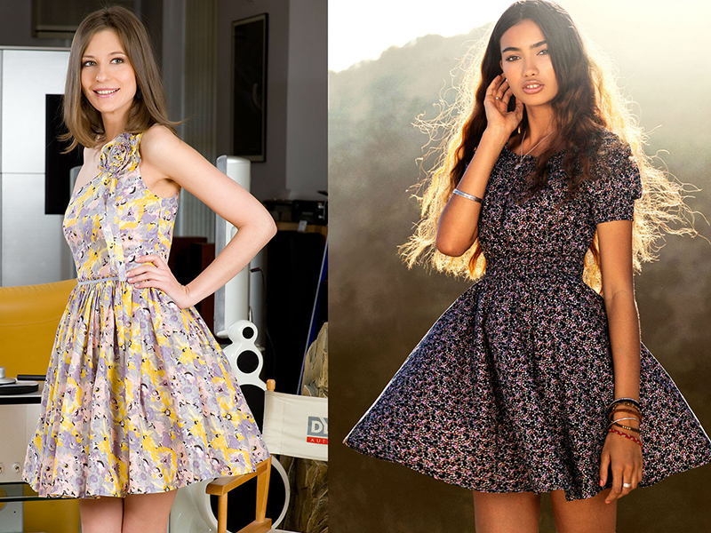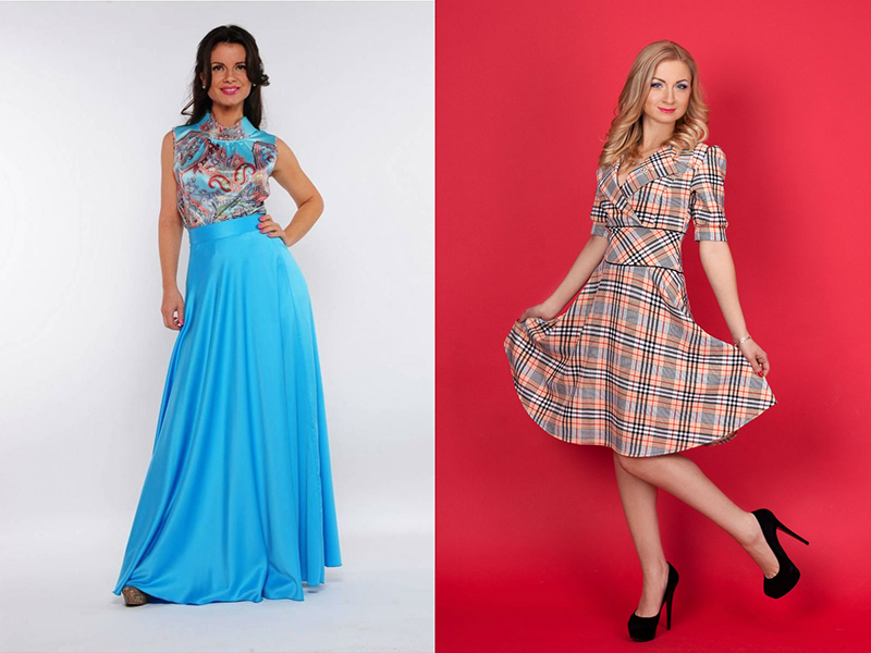 В дизайнерских коллекциях немало роскошных платьев с юбкой-солнце, изготовленных из дорогих фактур – кружева, органзы, шелка и других. Однако не менее интересны и демократичные модели, для пошива которых используются бюджетные ткани. Нужно отметить, что выглядят такие изделия не менее интересно и стильно.