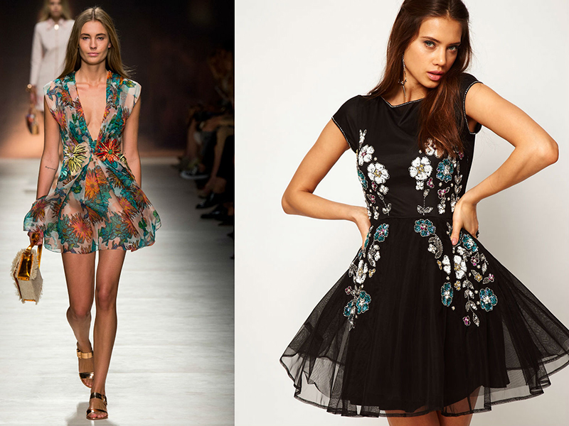 Растительные мотивы в нарядах с юбкой солнце наиболее часто встречаются в летних моделях. Такие платья яркие и привлекательные. Цветочный принт нередко выбирают для моделей в стиле ретро, а также для сарафанов на бретельках.